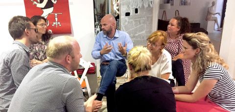 Das Thema des gemeinsam mit „KREATIVES SACHSEN“ organisierten Meetups traf auf großes Interesse. Die zahlreichen Teilnehmer lernten drei erfolgreiche genossenschaftlich organisierte Unternehmungen kennen und hatten anschließend die Gelegenheit, ihre Fragen in einer Expertenrunde zum Wirtschaftsmodell Genossenschaft zu stellen. Abgehalten wurde die interaktive Fragerunde im Fishbowl-Format, bei dem im Innenkreis mit den Experten ein Teilnehmer aus dem Außenkreis auf einem „Gast-Stuhl“Platz nehmen, Fragen stellen und mitdiskutieren kann. Und das so lange, bis er alles gesagt hat oder ein weiterer Teilnehmer aus dem Außenkreis auf dem Gast-Stuhl Platz nehmen will. Dieses Format wurde sehr gut angenommen, denn trotz sommerlicher Außentemperaturen wurde davon bis in die späten Abendstunden rege Gebrauch gemacht.